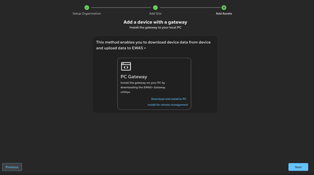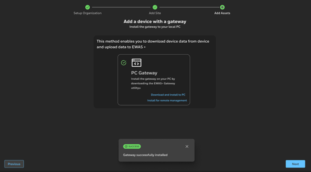 After the PC Gateway is installed and connected, you see the verification page.